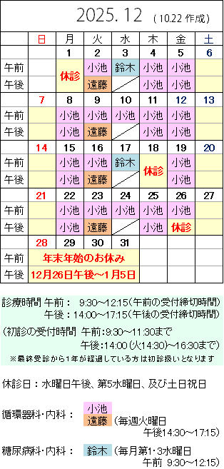 12月1日(月)、18日(金)は休診とさせて頂きます。ご迷惑をおかけしますがよろしくお願いいたします(2025.10.31掲載)